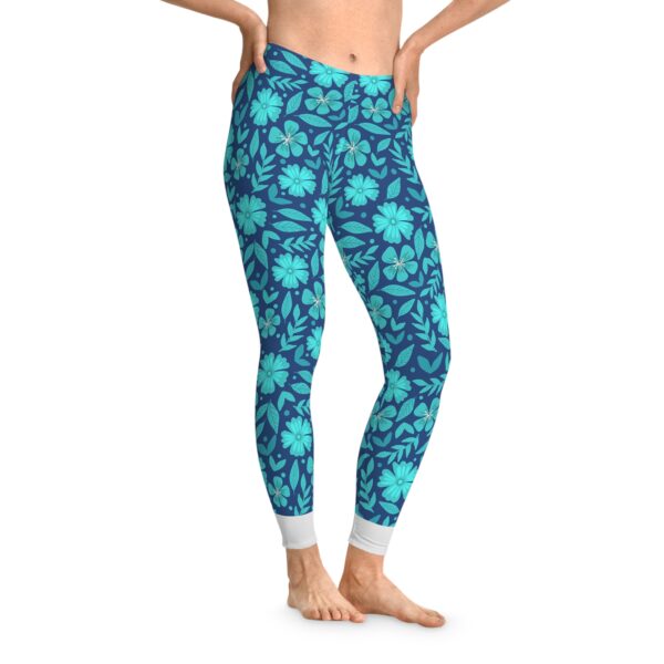 Blue Floral Stretchy Elastane Leggings